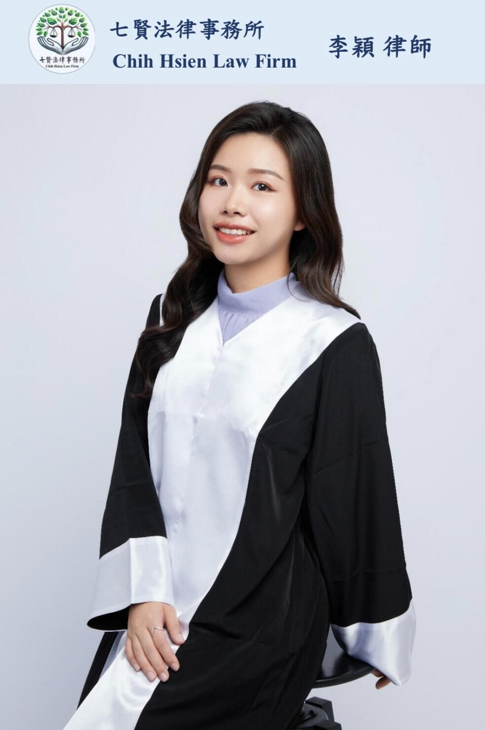 團隊中的李穎律師,則為後起之秀,專長中、英文契約審閱及撰擬,擁有法律學系、社會學系雙學士及國際法碩士,曾獲2018 Jessup International Law Moot Court Competition– (Taiwan Rounds) Best Memorial殊榮,時刻為民衆守護住最佳權益。因此,本所本於豐富的司法實務經驗,除了接受民眾一般法律訴訟之委託及相關業務服務外,有感於一些民眾遇到法律問題時,或因必需付出高價的諮詢費,而感到求助無門,所以透過本所的場域平台,邀集學養俱佳的退休司法官,以他們的智慧與專業投入社會公益,在事務所開辦每月兩場次的「公益法律諮詢」,除了完全免費外,每一事件的諮詢時間更長達五十分鐘,以利能夠更完整的提供予民眾法律資訊。我們相信,法律不只是條文,更是一種關懷。公益諮詢純粹為了幫助需要的人,不牽涉後續委任,只希望在理解與傾聽中,讓正義更靠近每個人。如同高掛在七賢法律事務所那顆生命的希望樹一般,樹上廣納生靈百禽,寫著 “Justice & Hope”,本所期待透過法律團隊的法律專業,能真正協助民眾,平抑冤曲,看見那道司法之光。